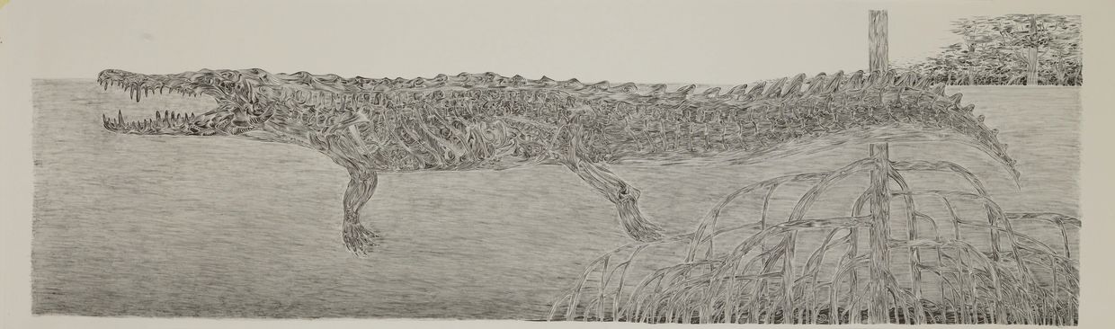 An anatomically correct, x-ray view of a Female, Australian, Saltwater Croc.